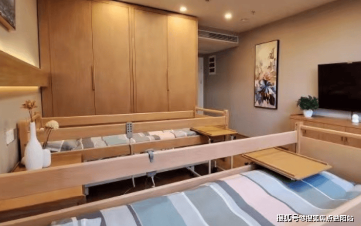 房间内,床头、马桶旁、淋浴区均安装紧急呼叫按钮,30秒内护理员响应;电动护理床可调节高度与角度,方便长者起身或卧床;衣柜采用圆角设计,避免碰撞伤害。公共区域,300多个高清摄像头覆盖走廊与活动室(房间内部不涉及隐私),人脸识别门禁系统防止陌生人进入;消防喷淋系统每4小时自动巡检,夜间门禁采用红外感应技术,监测到跌倒等异常情况立即报警。