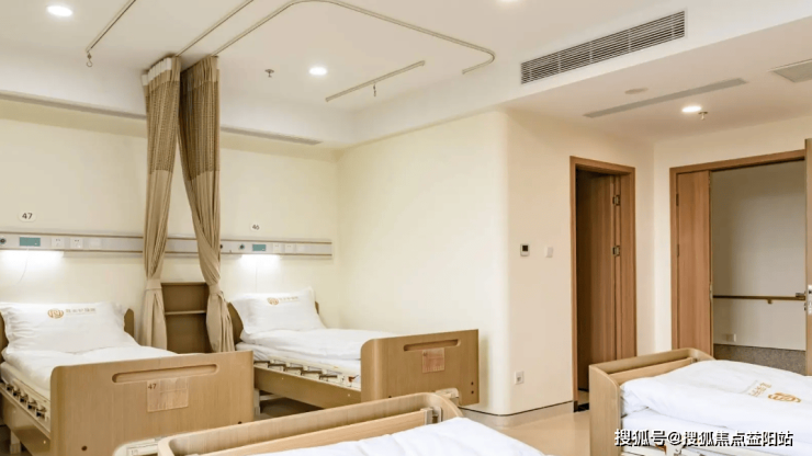 适老化设计是茸奕护理院的一大特色。全院采用无障碍通行设计,走廊宽度达1.8米,铺设防滑地胶并配备双层扶手,适配轮椅与护理床双向通行;公共区域设置环形动线,将康复训练室、文化活动室、餐饮区串联成闭合回路,减少长者步行距离;房间内预留医疗设备接口,支持吸氧、心电监护等需求,家具边角均做圆角处理,避免磕碰风险。此外,院内覆盖毫米波雷达跌倒监测装置,走廊宽度加装双层扶手,电梯配备语音播报与超大按钮,细节处彰显人性化考量。