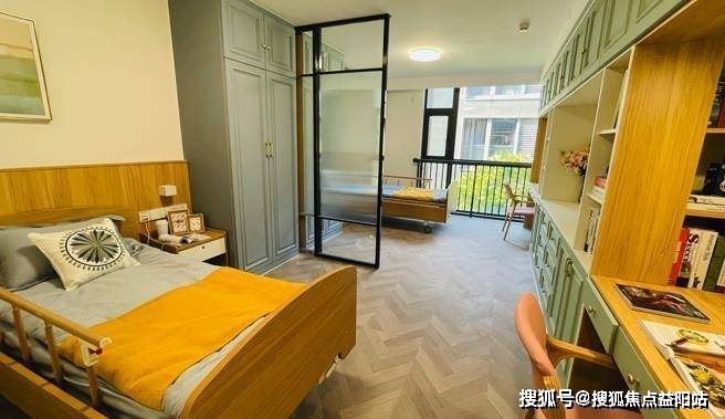 居住空间采光通风与隐私保护:居住空间以“通透”为设计关键词,超80%的房型为朝南户型,配合大面积落地窗设计,每日自然采光时长超过8小时,让室内充满生机与温暖。单人间配备独立阳台,引入自然光线与清风;双人间通过1.2米高隔断划分睡眠区域,既保留社交互动可能,又维护个人隐私。房间内采用无主灯设计,避免强光刺激,家具边缘均做圆角处理,防止磕碰,体现对长者生活习惯的尊重与关怀。