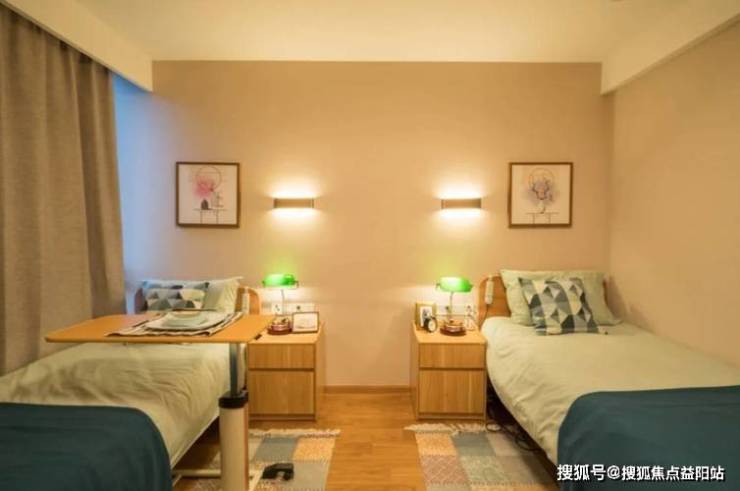 每间房均配置观景阳台,采用大面积落地窗设计,确保日间采光时长超过6小时。新风系统实现24小时空气循环,过滤PM2.5的同时调节湿度,避免室内闷热。双人间通过可调节隔断实现空间灵活划分,既保留社交互动可能,又确保个人领域独立;所有房间门均采用磁吸式静音锁,减少开关门噪音干扰。智能护理床可调节高度与角度,辅助长者自主完成坐起、翻身等动作,床头设置独立呼叫铃与夜灯系统,夜间起身无需摸黑。