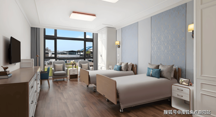 单人间:面积25-40㎡,配备独立卫浴、智能马桶、适老化家具及紧急呼叫系统,床头设置记忆墙支持家庭照片布置,强化“家”的归属感。