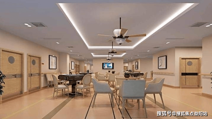 建筑采用“回字型”布局,以“减少护理距离、提升通行效率”为核心,形成无障碍适老化动线。走廊宽度达1.8米,双侧扶手间距≤1米,地面铺设防滑地胶,夜间感应夜灯实现全域覆盖,确保长者夜间行走安全。电梯配备语音提示与盲文按钮,公共区域设置轮椅回转空间,全楼域实现无障碍通行。居住区与活动区通过中央花园自然衔接,阳光活动厅、康复训练角、图书角等功能区通过液压升降平台实现轮椅100%覆盖,形成“综合服务-居住照护-认知症专区-高端康养”的立体功能网络。
