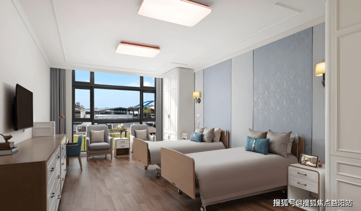 凯健康宁苑以“蓝色海洋”为主题,建筑风格简约优雅,与周边绿树成荫的自然景观相融合,形成独特的疗愈环境。院内设有单人间、双人间及套房等多种房型,单人间面积约30平方米,配备独立卫浴、智能护理床、全景落地窗及适老化家具;双人间采用分床隔断设计,确保隐私与舒适性;套房则增设独立客厅与厨房,满足家庭式居住需求。公共区域涵盖音乐教室、手工教室、多功能活动厅及悦心咖啡吧等,为老人提供丰富的休闲社交空间。