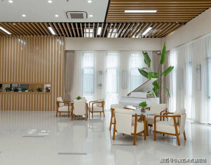 院内设施全面遵循适老化标准,居住空间南北通透、层高超 3 米,设有单人间、双人间、三人间、六人间等多样房型,所有房间均配备独立卫浴、观景阳台、智能紧急呼叫系统、防滑地胶与墙面防撞软包。公共区域功能完善,每层设照护站、交往厅、助浴室与备餐厅,同时拥有阅览室、手工室、书画室、影音室、健身室等 8 大功能区,更配备 2000㎡屋顶花园与康复步道,满足长者日常休闲与康复需求。