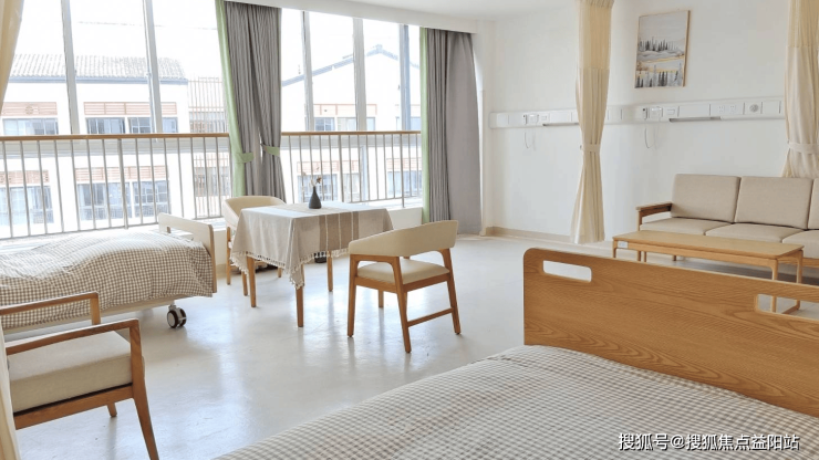 每间居室均采用南北通透设计,确保全天候自然采光。窗户选用双层中空玻璃,既隔绝噪音又保持室内恒温。隐私保护被融入细节:双人间通过可移动隔断实现空间分割,多人间床头设置独立布帘,卫生间门采用磨砂玻璃与实体门结合设计,兼顾通透感与私密性。家具配置遵循“适老化适配”原则:可调节高度的护理床、带扶手的软包座椅、防倾倒的圆角茶几,每一处细节都贴合长者身体机能。