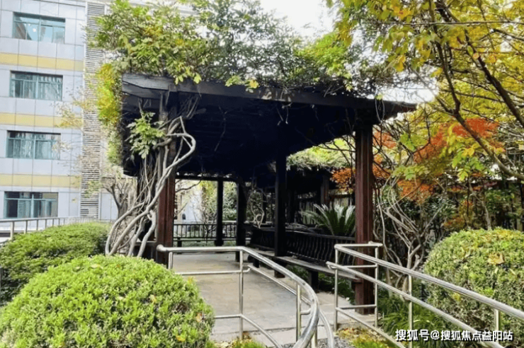5770平方米的建筑空间中,31%的面积被绿化覆盖。中央庭院以“四季有景”为原则,樱花、桂花、红枫与常绿灌木错落分布,林间步道采用透水混凝土铺设,雨天亦能安全行走。屋顶花园开辟种植区,长者可参与蔬菜栽培,感受耕耘与收获的乐趣。户外休闲区配备遮阳伞与木质桌椅,晨间练太极、午后读报、傍晚与同伴闲聊,自然与人文在此交织成温暖的日常。