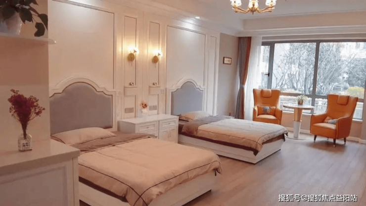 公寓主体为6层建筑,规划146张床位,涵盖单人间、双人间及VIP套房,面积从35平方米至60平方米不等。居住空间采用防滑地胶、L型扶手及智能马桶,床头与卫生间均设紧急呼叫按钮;套间增设小客厅与观景阳台,满足个性化需求。